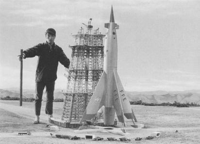 Meanwhile, the representatives continue the tour and are taken down to the underground factory floor where the Japanese are constructing these two huge spaceships. The men all ooh and ahh and are suitable impressed at the progress the Japanese engineers have made with what is said to be an international design. The ships look like giant lawn darts, with typical 1950s design elements like a long, tapering body and four sweeping fins. Nine astronauts will crew each ship. They have "SPIP-1" and "SPIP-2" painted on their nosecones, and they are pronounced "Speep". We see no other Earth spaceships before this one, so we have to assume that the SPIPs are the first interplanetary vessels constructed by humans. Has it taken eight years since the Mysterian invasion to reverse engineer their technology?
