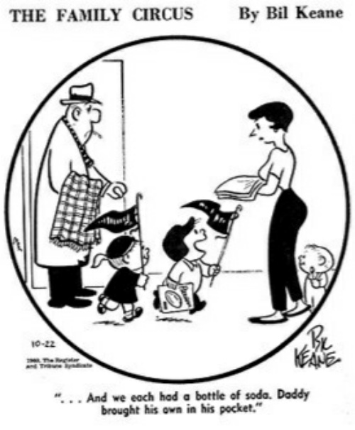 Bil Keane's "The Family Circus"debuted on February 29th, 1960 and for its first few years it was actually a bit edgy and risque, with frequent gags centering on Dad's fondness for the bottle and his propensity for ogling shapely ladies other than his eternally bob-haired wife.