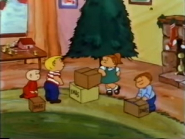 After a brief commercial break we return for a gratuitous coda where the kids open up their presents and crack wise, because sometimes they're just plain old regular kids but sometimes they're precocious little adults.