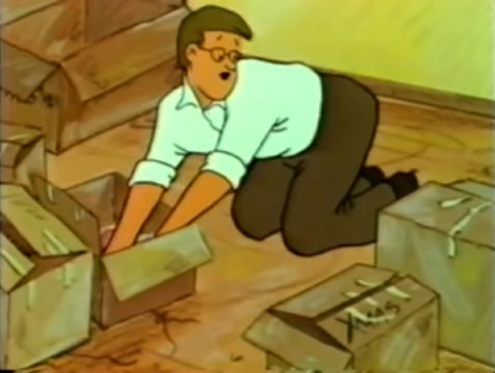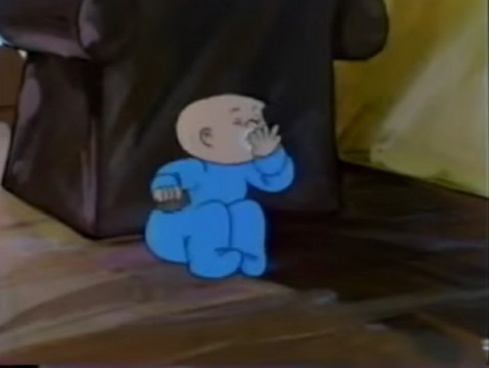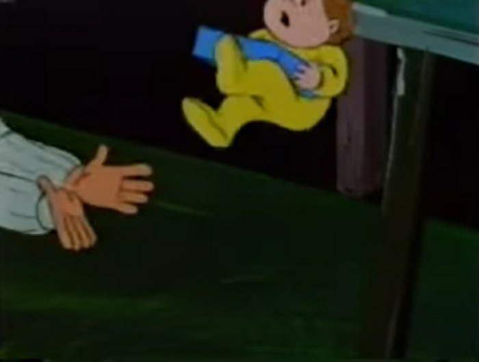 As Jeffy reaches the box he loses his footing and tumbles off the top of the pile in oh-so-dramatic slow motion, only to be caught in the waiting arms of Daddy who has arrived just in time to save him from an ignominious death, splattered like a rancid tomato across the living room carpet.