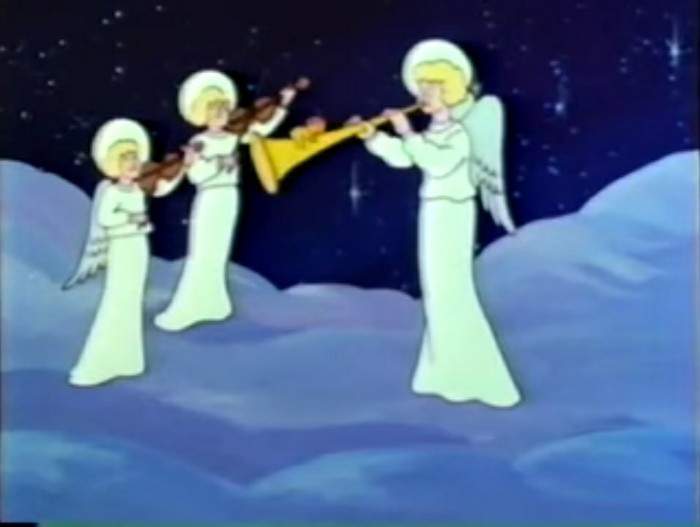 Up to this point there's been a triangular tug of war between the secular trappings of Christmas, represented by Santa and Christmas trees and presents and shopping in the first corner, the religious and spiritual significance of the holiday represented by visions of angels and talk of loved ones passed on to Heaven in the second, and the magical whimsy of childhood imagination in the third. Now we get to the inevitably maudlin and infuriating threading-the-needle conclusion we've been hoping to avoid from the instant the plot device of Granddad's Christmas star was introduced, where the makers of the special blithely expect us to believe in absolutely everything without their taking a definitive or principled position on anything.