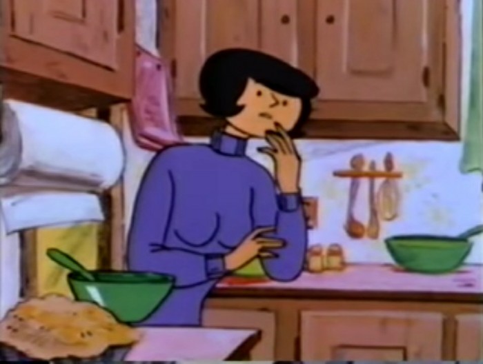 The other kids are joined now by the youngest sibling, the pre-verbal moppet PJ, who serves absolutely no function in this special or the comic strip other than to demonstrate that the Keane family opposes all forms of birth control.