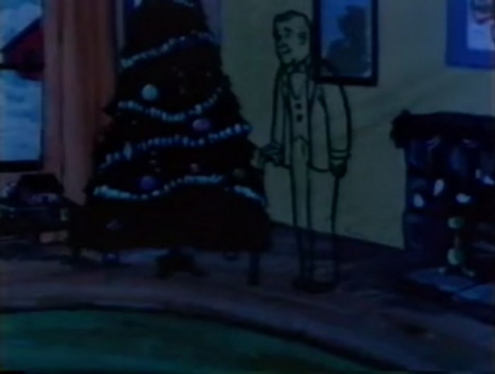Jeffy creeps over to the living room doorway and sees the ghost of Warren G. Harding standing by the Christmas tree.