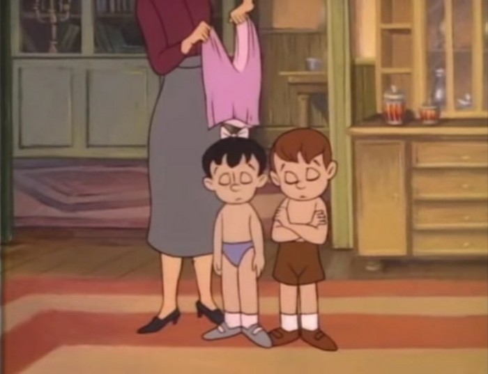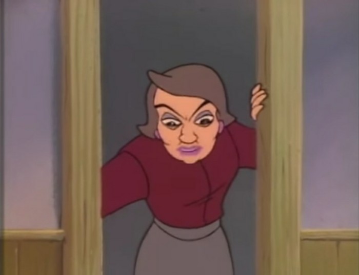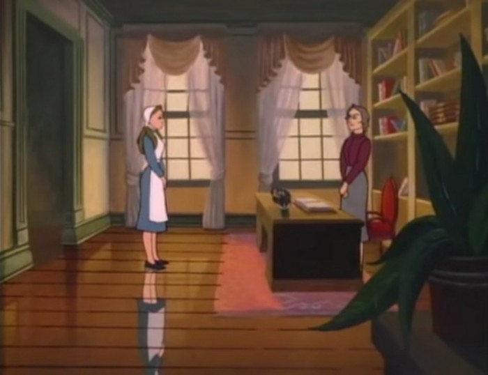 So the Mayor runs off to go do some Mayorin' and Judy runs off to tell the Orphans about the presents and clothes and Mrs. Mavilda calls up her sketchy, good-time pals for another all-night poker party so she can gamble away the money she's just been handed...and now, folks we need to talk about the oddly static, glitchy animation.