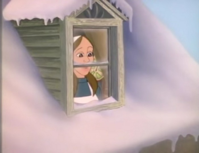 Next we see Judy at her snowy Garret window looking out at the children as they play with Mrs. Hopewell one last time, impotently bemoaning the cruelty of Malvilda's schemes instead of grabbing her coat and heading to the nearest neighbor's house to blow the whistle on her by calling up the Mayor and maybe even the local newspaper. She's nominally presented as the "hero" of A Christmas Tree but she's just a meek, passive little wallflower, craven and spineless, utterly lacking the strength to follow through on her alleged convictions.