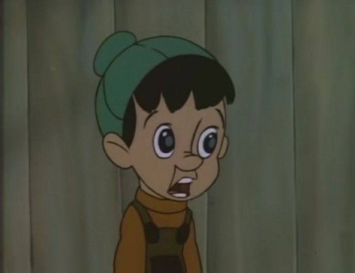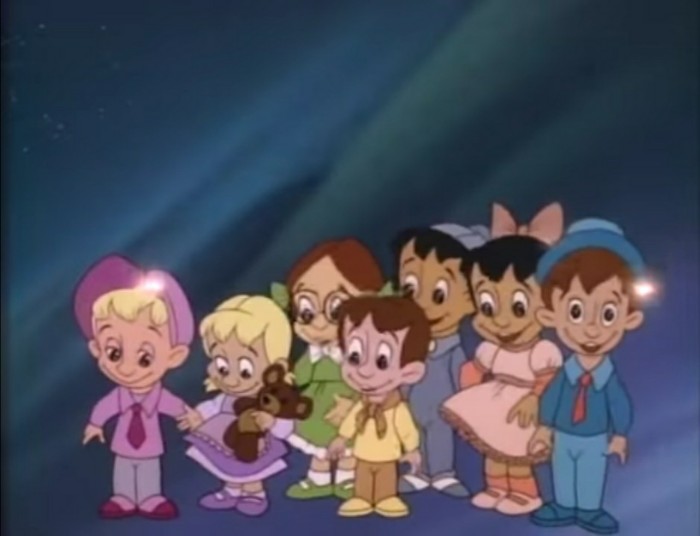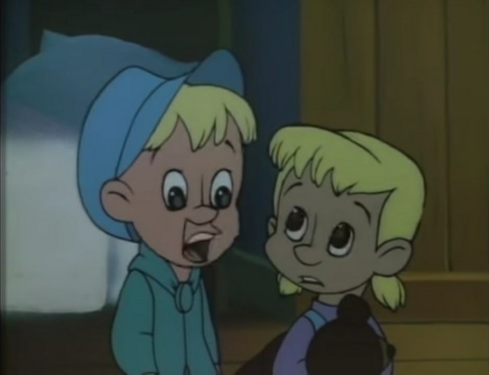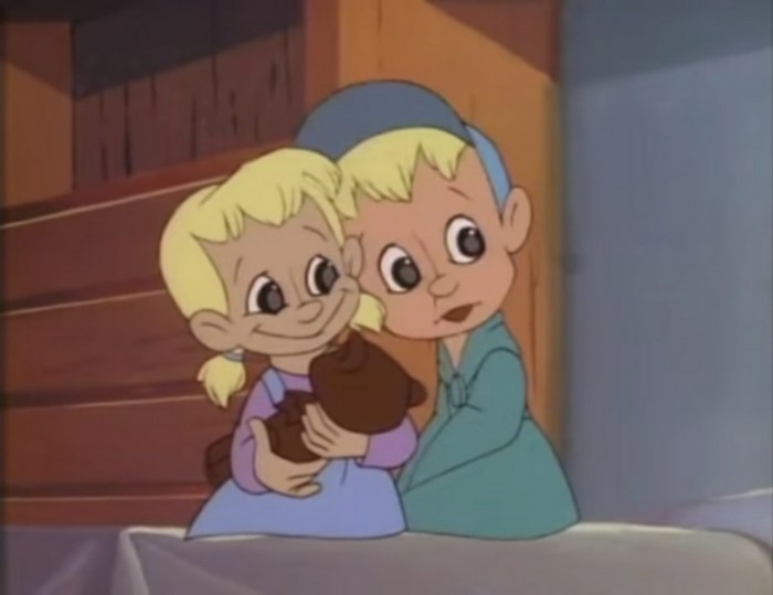 Lily and Pappy are voiced by actual children, and the upside of this is that they actually sound like kids. The downside is that these particular kids can't recite their dialog any more convincingly than the narrator or anyone else providing voices for this thing. The Orphans, on the other hand are all voiced by a couple of adults pretending they're children, with one kid's voice modulated electronically to increase the pitch and sounding like a castrated Smurf on helium. To make things worse and even more confusing than it already is to tell the various moppets apart they sometimes use the wrong voice on the wrong kids.