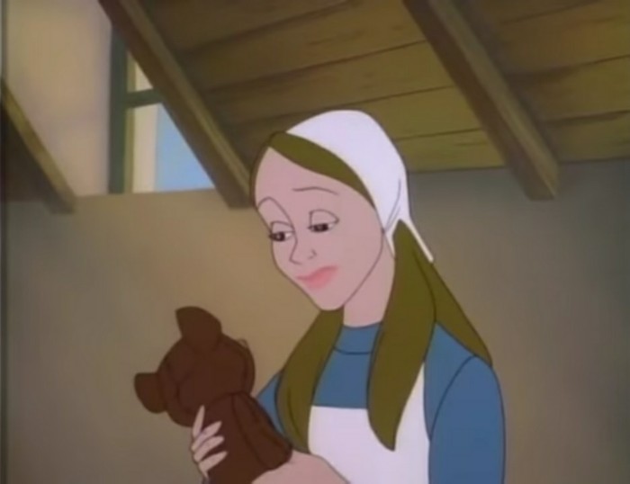 This is some pretty strong uncanny valley stuff here. Clearly the animators were going for the big head/big eyes formula Disney so often employs to accentuate cutesy facial features, but somewhere along the way it just went entirely to shit and instead we've gotten a bunch of not-quite-human-looking, plastic body-snatched replicants. It's tough to muster up any warmth or sympathy for them because they're just so damn uncomfortable to look at.