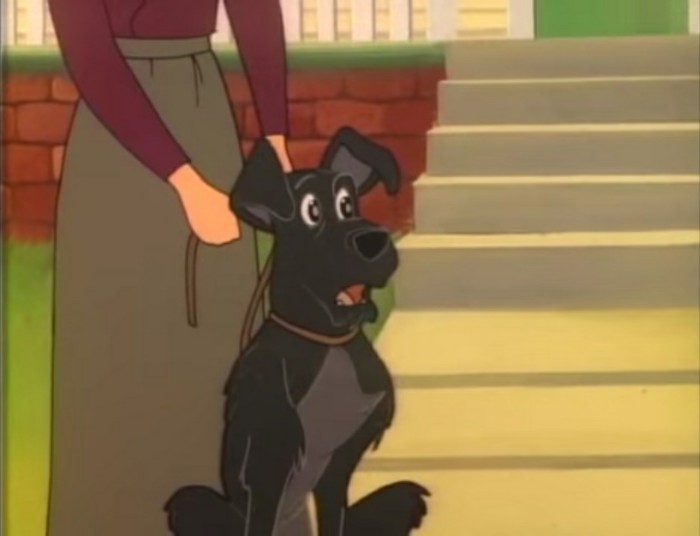 The children introduce Judy to Licorice and she says "I didn't know we had a dog!" They explain that Licorice is contraband, and if Mrs. Mavilda finds out about him they'll all be in big trouble. At first Judy tells them that if the dog is not allowed then he shouldn't be there, but one of the Orphans says "I knew we shouldn't have told you, adults always ruin everything," which sad-sack-guilt-trips her into letting the mutt stay.