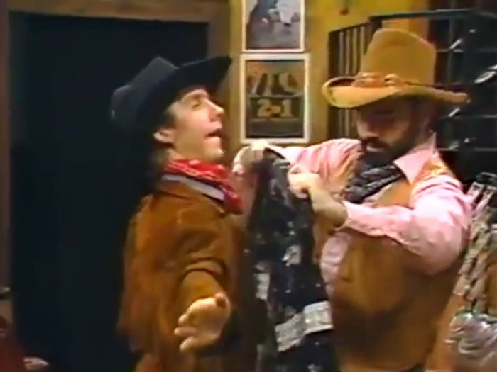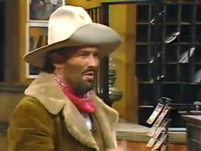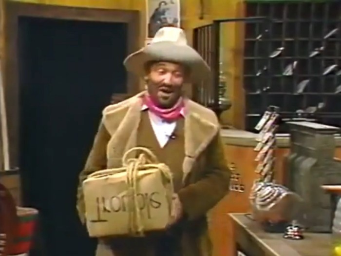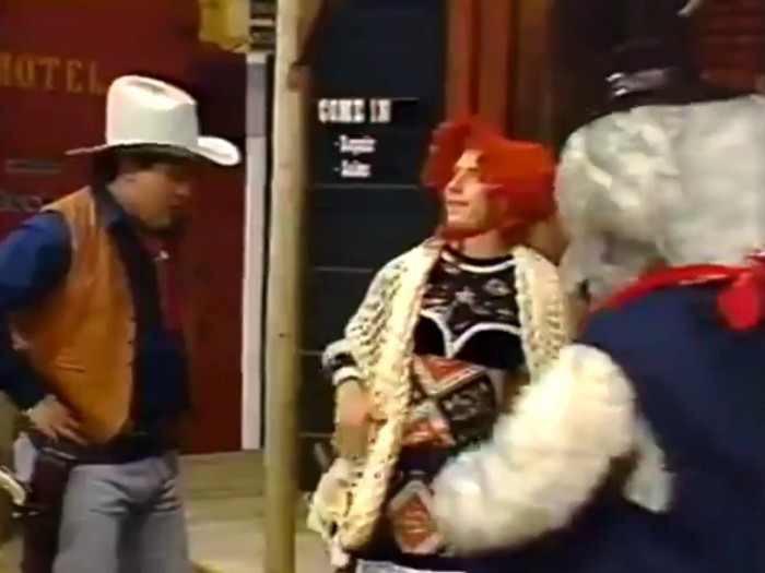 We open in Dry Gulch, a studio-bound, old west town full of God-fearin' just plain folks who've been born again in the blood of the Savior, where Sheriff's Deputy Nicodemus has just popped into Miss Lana's general store looking to do a little holiday moonlightin'. Turns out ol' Nick hasn't got the scratch to buy his boss Gospel Bill a nice Christmas present this year so he's hoping to earn himself a few extra shekels doing odd jobs around the store. Sadly, Miss Lana is out of town, and her counter boy Barkamaeus isn't authorized to make hiring and firing decisions on her behalf. Rather than commiserating with his friend's penurious plight, however, the dirty dog chooses the path of braggadocio and commences to gush over the beautiful and expensive pair of cowboy boots he himself has bought for their beloved town sheriff.