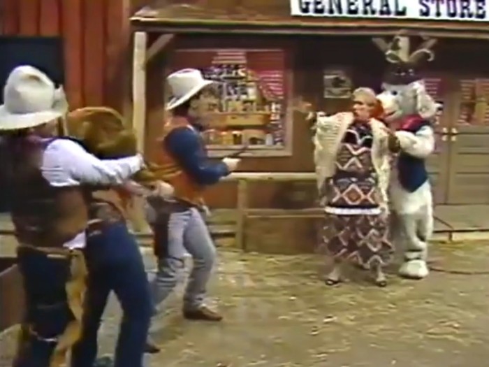 As is usual with Christian-themed programs, each week’s story was designed to demonstrate some heavy-handed moral trope or “uniquely” Christian value, but The Gospel Bill Show goes the extra forty cubits with some daffy, non-sequitur segments featuring puppets, nature footage and a native American in buckskins and full ceremonial headdress named “Chief Nowanasin,” who talks in halting pidgin English like a "TV Injun'" from the 1950's and gives the kids secret smoke-signal bible messages to decode with a substitution cipher they could get by writing to the ministry.