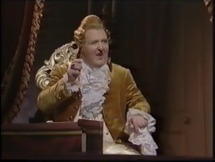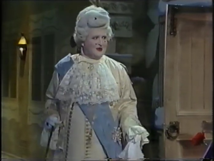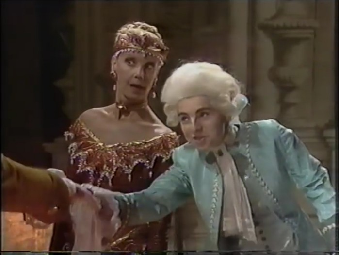 Back inside the opera house we rejoin Pumpernickel and Maria, preparing to perform an aria for the Archduke in the hopes he'll be impressed enough to fund their operation for another season. The Archduke is played as a foppish man-child by James Saxon, a fairly successful character actor who'd played variations on the same character type in two previous series of the program. He's fey and insufferable, desperately straining to wring some vestige of joy or humor from the tired, thankless stereotype and limp dialogue.