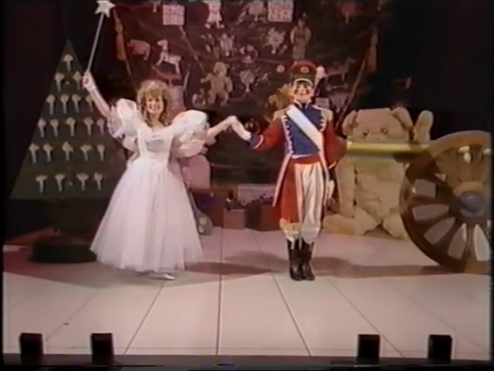 Now one of the painted set pieces spins around to reveal Maria, resplendent in a gauzy white dress. She sings her part well, and it's not a bad song, either. It's all about her pure and innocent dream to bring joy and happiness but becoming the fairest Christmas fairy of them all. Shirt hands her a wand--and the keys to her Opera stardom--and as the show comes to a close it seems that Christmas dreams really can come true.