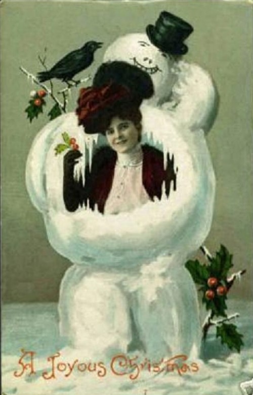 As they all head off to get cockchafed together, the two Bags drag themselves out into the cold night, their wigs disheveled, their dresses soiled and torn, and generally looking shagged out and warmed over. They conclude that there's no use continuing to fight each other when they've cleared both lost their play, and after all, it's Christmas, a time of friendship and good will. They decide to make up and be friends, and maybe go out to one of the Flugelfurt beer halls for an all-night booze-up. As they link arms to take to the town, T. Bag slams shut the opera house door behind them, sending down an avalanche of snow.
