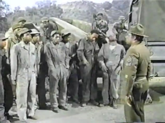 I'm sure you're seeing a pattern emerge here, in that there are a lot of characters but not much variety to them. It's like they had an ensemble cast checklist, but it only had three or four options listed, so they had to double, triple and quadruple up to fill out the cast. One of the reasons M*A*S*H worked so beautifully was the diverse backgrounds of the characters, with erudite and educated doctors, career military professionals, nurse volunteers and working-class just plain folks all operating in a closed community towards the common goals of saving soldiers' lives and making it home in one piece themselves. Here, they didn't have that kind of palette available, as the historical Red Ball Express was made up almost exclusively of working-class and underprivileged minorities. The writers and producers also clearly had little experience or understanding of the worldviews of those minorities, so they leaned instead on stock stereotypes, a tone-deaf hypocrisy of their own that fatally undermined their attempts at meaningful social commentary.