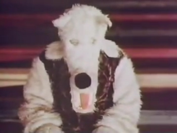 But where is the Wolf all this time? Santa doesn't see him anywhere in the factory, so he waddles off to find him. Lo and behold he discovers the old fuzzy tyrant back at the puppet theater, sitting right in the middle of the front row, enjoying an exclusive performance of whatever the hell it is the butt-ugly marionettes are supposed to be doing, all to himself. Santa figures the guy's done such a good job putting the fear of the devil in his workforce he deserves a little down time, so he emits another jolly giggle and leaves him to his fun.