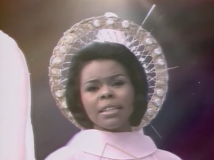 Aside from all the ornate crowns, jewels, beads and baubles, the Angels' gifts include a new color only the Christ child can see, and special music only the Christ child can hear, which is kind of neat. The latter gift is presented by the only person of color in Heaven since Cab Calloway, no doubt chosen for her stellar singing voice, but I'm still not convinced the place isn't mostly segregated.