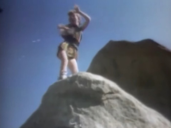 As a side note here, I've finally lost track of how many movies and TV productions we've covered here at MMT over the years that were filmed in this particular location. It's got to be well over a hundred. The Littlest Angel also features some footage shot at the Vasquez Rocks, another extremely popular location we've seen in dozens of other productions. In fact, though we've only published three articles so far this year, two of them feature scenes filmed at both of these places, including a rock formation Michael will soon be climbing located within spitting distance of where Captain Kirk fought the Gorn back in 1966.